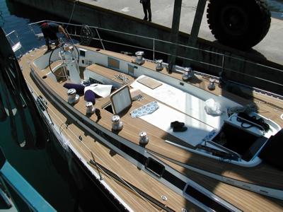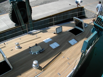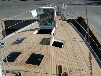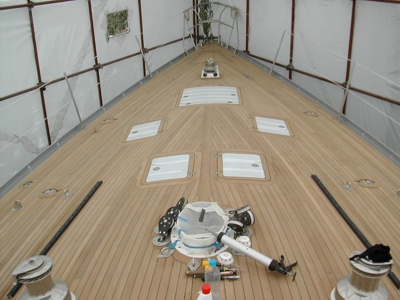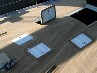 Completed New Burma Teak Deck With Newly Installed Rondal Flush Hatches
